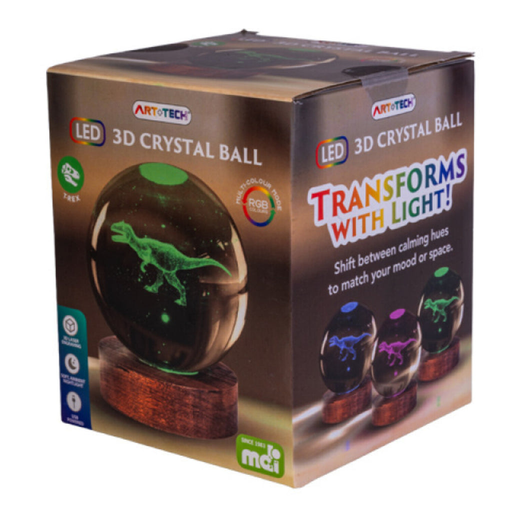 Bring some Jurassic attitude to your space with the T-Rex 3D LED Crystal Lamp. This mighty mini dino doesn’t roar, but it sure knows how to light up a room! Inside the solid glass sphere sits a laser-engraved T-Rex fossil that glows with colour-changing LED lights, making it the coolest fossil since… well, fossils. Set it on your desk, shelf, or bedside table and watch your ancient pal glow in style! The sturdy wooden base keeps things steady while the USB power makes it super easy to plug in and go. It’s science, décor, and dino drama all rolled into one glowing globe of greatness. Laser-engraved T-Rex fossil inside a crystal-clear solid glass sphere Colour-changing LED light powered by 1m USB for easy setup (wall adapter not included) Sturdy wooden base adds warmth and stability to your display Dimensions: 8cm in diameter x 9cm tall. Perfect for anyone who loves dinosaurs, quirky lighting, or gifts that make people grin, the T-Rex 3D LED Crystal Lamp is ready to stomp into your home. Grab one today and let your inner dinosaur roar in glowing glory!